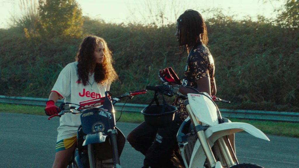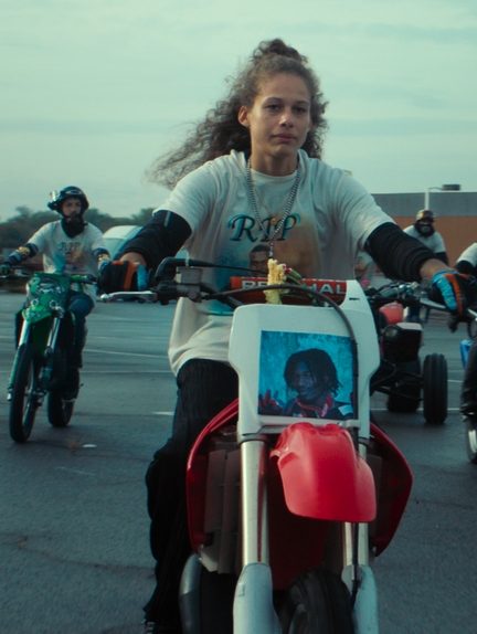 Je n’ai pas été beaucoup au ciné ce mois-ci -j’ai l’impression d’écrire tout le temps ça, mais c’est vraiment une période creuse en ce moment, non ?- mais j’ai pu voir le superbe Rodéo de Lola Quiveron, qui passait à Cannes et dont les Parisien.ne.s exclu.e.s du festival (c’est à dire, moi, qui le vit tout à fait bien) ont pu manger les miettes grâce à des séances de reprise. J’en attendais beaucoup et que dire ? Il n’y a pas deux films comme celui-ci dans le paysage hexagonal français. Rodéo est à la frontière de plein de choses : le film de genre, le film social, le coming of age, le clip vidéo… Il est traversé par une énergie qui doit beaucoup à la fougue de son actrice principale, Julie Ledru, incandescente dès les premières secondes. A certains moments, le film donne l’impression de prendre un mauvais virage : comment parler d’un personnage féminin dans un milieu aussi masculin sans la réduire aux stéréotypes habituels -l’amoureuse, la muse, la mère de famille- mais tout en restant réaliste concernant les obstacles qu’elle rencontrera forcément ? A mes yeux, Lola Quiveron évite les écueils les plus évidents d’un film qui pourrait se vouloir le portrait d’un milieu mais qui, au final, ne se réduit pas à ça, en faisant baigner son œuvre dans une atmosphère quasi-surréaliste. Rodéo flirte avec le surnaturel et c’est au final ça qui selon moi fait toute son originalité et sa force, dans un cinéma français gangrené par l’ambition des réalisateurs bourgeois de parler “des autres” et de leur humanité.